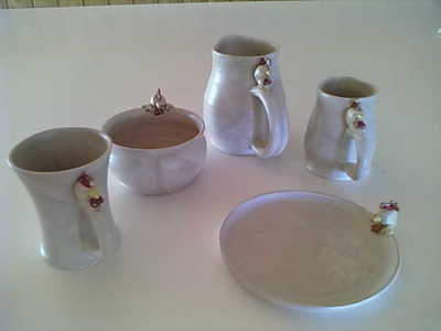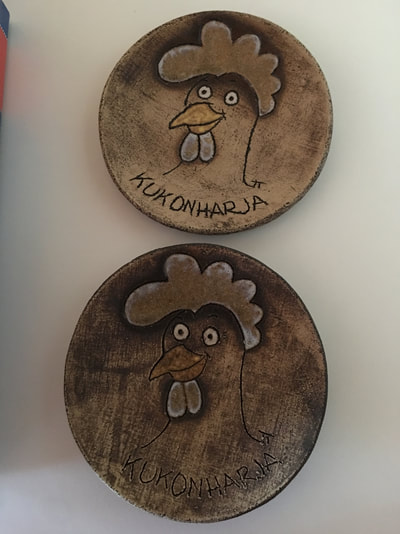 Alla olevat tuotteet on Kyläyhdistykselle suunnitellut ja toteuttanut Anu Isokallio Palojoen Kruukusta. Suunnitelun pohjana on käytetty Kyläyhdistyksen virallista logoa, jonka on suunnitellut ja toteuttanut Tuula Terävä vuonna 1997. Nämä tuotteet ovat tilaus tavaraa, jotka kyläyhdistys tilaa Kruukusta ja toimittaa tilaajille. Muki, sokerikko, kaatimet ja leipälautanen kuuluvat Kruukun perus valikoimaan. Kyläyhdistyksen myymä astiasto on varustettu logollamme ja näitä saa vain yhdistyksen kautta. Osa tuotteista soveltuu myäs ulkokäyttön.